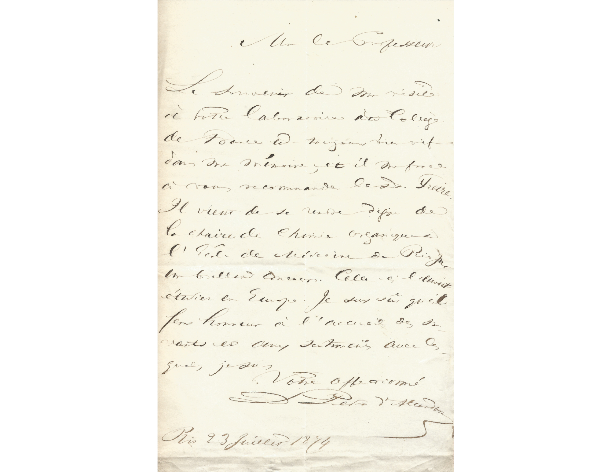 Escrita em 9 de junho de 1831, a bordo da fragata inglesa The Volage, no porto de Cherbourg, esta carta de Dom Pedro I é um testemunho direto do exílio. Poucas semanas após abdicar do trono do Brasil, ele escreve a um amigo, talvez José Bonifácio de Andrade, que havia demonstrado lealdade e amizade à sua família nos tempos de poder. O tom é ao mesmo tempo digno e profundamente humano: Dom Pedro fala do alívio após as “tormentas da política”, relata a travessia marítima e menciona a saúde da ex-imperatriz, enquanto afirma estar fisicamente melhor do que nunca. O trecho mais comovente surge quando pede que esse amigo continue a proteger seu filho — o futuro Dom Pedro II, então com apenas cinco anos — deixado no Brasil à frente de um Império instável. Escrita no próprio navio do exílio, esta carta excepcional captura o instante exato em que o fundador do Império deixa de ser soberano e fala como pai, homem e exilado.